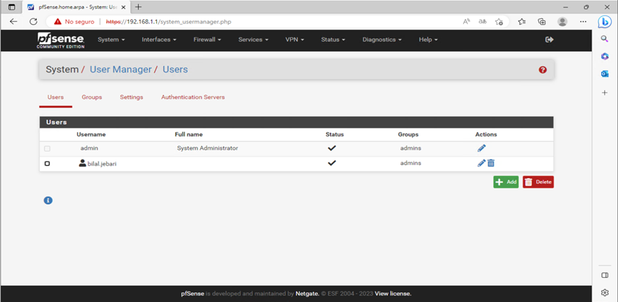este usuario le agregamos al Grpup Admins, también le generamos un certificado.